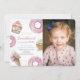 Den här söta "lilla älskling"-flickans födelsedagsfotoinbjudan innehåller nötter, muffinsar och en glass i rosa-skuggor. Baksidan har en ljus rosa bakgrund med sprinkler. Anpassa den efter dina behov. Du hittar matchande produkter i min butik.