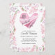 Ett litet svetthjärta är på gång med babyduschinbjudan med stiliserat hjärta från kärlek, inramad med ömtåliga rosa blommor. Denna feminina blommigt babydusch inbjudan är perfekt för vår och sommararrangemang. Rosa girig och blomstrande med kärlek, det är ett underbart val även för ert tema från februari Valentine osv.