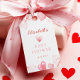Elegant- och snygga babyduschfavärde-taggar med en mjuk rosa-banderoll som är försedd med söta vattenfärgshjärtan