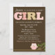 Brev i multipelblocket mönster är klart GIRL, med en söt liten uggla för den här bedrövliga inbjudan till babydusch.