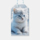 Vit kattunge med blå ögon som leker utanför en vinterdag i snö. Ai genererade konst.