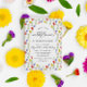 Vår lilla vildblomma håller på att bli en. Vattenfärgad blommigt vår/sommarens första födelsedag. Text kan redigeras för ett barn i vilken ålder som helst.