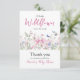 Celebrate the arrival of a little baby girl with this Wildflower themed Little Wild Flower Pink Bow Floral Girl Baby Shower Thank You Card! This charming design features a bow, butterflies and flowers in pink, blue and green colors is perfect for a baby shower It's a girl themed party. Customize the details effortlessly to create the perfect decor for your special event.