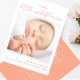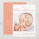 These simple, minimalist baby shower thank you and birth announcement cards in one are perfect for introducing your baby girl! They feature your custom text in simple typography and stylish handwritten script for a lovely title: our little wildflower, surrounding your custom photo in the middle. The reverse features a peach pink background and white text. The simple design is adorned with a hand-drawn flower, which lends a boho country feel to this elegant card. Create your own by clicking on the ´´Personalize´´ button.