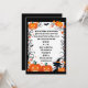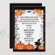 En liten häxas silhuett omges av jack-o-lanternor och fladdermus, mot ett svart ram på denna söta och roligt Halloween fest inbjudan. Det skulle fungera bra för tonåringar och barn, liksom för vuxnor. Baksidan är solid svart.