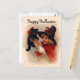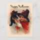En underbar vintage har en liten Witch-flicka i spetsig svart hatt och rött med sin söta svarta kattunge. Du kan anpassa happy halloween-texten.