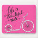 Liv är en härlig ritt - modern handskriven modern calligraphy, det inspirera citationstecknet för kort på rosa bakgrund med sparkar cykel | Bigstock® - all reserverad rättigheter.