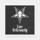 Här är en underbar fasa, den galna lunchnapkin för party, middag eller Thanksgiving! Bapkins har en stiliserad baphometget, kanske Black Philip, med ord "Live Delicious" på svart. Bara en liten påminnelse om att få dekadent och äta mer snacks. Det är perfekt för en konsuvsamling eller annan häxkall! De här luncharna är också underbara för ett skräcktemat evenemang, Halloween eller en goth-händelse och kommer att göra alla händelser mer dekadenta och sataniska!
