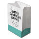 Live Laugh Kärlek-anpassningsbar-presentväska för gäster från bröllop från nygifta par. Vintagens typografimall med elegantens skriptbokstäver. Lägg till er egen Mr och Mrs. Surname plus date of giftermål. Trendigets utformning med tealblått grund. Byt till färg.