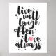 Idén poster att visa frasen "Lev gott, skratta ofta, kärlek alltid" i svarta penselskript och ett rosa hjärta med ett organiskt bläck struktur för att få ett äkta, handskrivet utseende. Designat att se underbar på alla porträtt-orienterade poster. Kontrollera om bilden måste flyttas eller ändras efter att du har ändrat poster storlek.