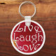 Ett originalmönster på en nyckelring med ord: leve skratta kärlek