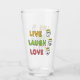 Live Laugh Love expression illustrated with the words plus faces - living, laughing and loving. A fun design to smile along with.