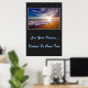 Poster med ett fotografi av en vacker solnedgång på stranden. Poster bakgrund är ett djupt kol färg. Anpassa det här objektet eller köp som det är. Lagrar-bild