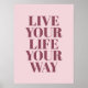 Live Your Life Your Way Quote Pink Typography Poster.