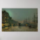 Gassljusglimtar på blötens stenar när kvällen sjunker ner på hamnstaden Liverpool. Alla fraktaser vilar på dockningssidan och ljus flimmer på lagerstället över puddles och tegelfasader. Luft är fuktig och moody, och staden känner sig både levande och borttappad i tanken - ett stadsmoment som är avstängt i skymning.