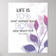 Motiveringsoffert: Livet är 10 procent vad som händer mig, 90 procent hur jag reagerar på det ~ Charles Swindow. Den här inspirerande offertduken och poster är underbar som självmotiv, eller som en gåva till vänner och familj, så att de inspireras varje dag när de ser ut som citatet. Det är också underbart som företagsmotiv för verktyg att inspirera ditt team vid ställe för att sträva efter spetskompetens. Citatet visas i ett skarpt teckensnitt över en elegant med bildbakgrund som består av pastellviolett och rosa löv.