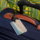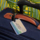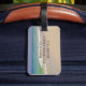 Anpassadet har ett eget bagagemärke med namn och telefonnummer. "Livet är bättre i Beach"