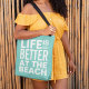 Vår sommarturkos akvarium med väskan "Life is Better at the Beach" i modern vit blocktypografi, som storlekssorteras efter en perfekt sommar påstående.