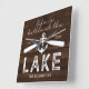 Den sjö-klocka som har en träeffekt som tryckt bakgrund, roligten som säger "livet är bättre vid sjö", båtårar, ankare, din familj namn och det år som är etablerat.