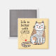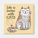 Sött roligt klotter av en katt som sitter upp med slutna ögon, rosa kinder och tanfläckar. Till vänster om henne står orden livet är bättre med katter i en rolig svart teckensnitt. Ett litet rött kärlekshjärta svävar ned från bokstaven C och bakgrunden är beige.