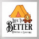 Kampanj. Livet är bättre runt en campingbrand. Cute Kawaii stil tecknad tält och campfire.