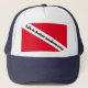 Livet är bättre under vatten, dykare ner i flagga Truckerkeps. Röd dykdesign med roliga citattecken. Anpassningsbarnas gåva till dykare, djuphavsdykare, simmare, båtkapten, skeppare, fiskare, instruktör, lärare, snorkelentusiast, jaktägare osv. Nautiskt flaggor med anknytning till båt, segling, fiske, hav, hav, vatten sport m.m. Lägg till din egen slogan (båt) namn eller humoristisk slogan.