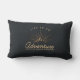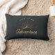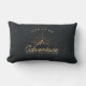 En lumbalkudde med en illustration av färgaden guld på en svart grått-bakgrund. Designad med en illustration av ett berg där sol strålar lyser utåt. Typografin säger: Livet är en drömupptäckt i Äventyr.