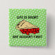 Livet är Kort. Ät Dessert först. Segment körsbär paj på grönt och vit polka dots bakgrund.
