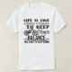 Skjortan har det klassiska ordspråket: "Livet är som att cykla. Om du vill behålla balansen måste du behålla flytta, i fet och snyggt svart text. Det är en ömtålig påminnelse till behållans flytta framåt, oavsett vad livet ger dig.