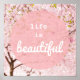Detta inspirerande citat är sammanfogat med ett vackert foto av Blommarna i Sakura Cherry i blomning, taget av Eggplant och Lila. Denna utformning skapades för att påminna oss alla om "livet är vackert".