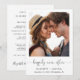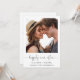 Enkel och chic vigsel eller privat bröllopsanmälan och inbjudan till efterfest. Framsidan visar ert fotografi, "happily ever after" i ett stilrent skrivsätt med svängar och era förnamn, bröllopsdatum och plats. På baksidan kan ni anpassa er anmälan och inbjudan mer i detalj, skapa en QR-kod länkad till er bröllopssida så att era gäster kan skanna för mer information och svara online, och lägga till era namn i ett signaturliknande skrivsätt.