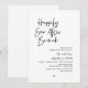 Markera början på er för evigt med elegans med vår moderna svart-vita tema efterbröllopsinbjudan "Happily Ever After Brunch" för celebrationen dagen efter. Perfekt för par som vill förlänga sin glada tillställning, utstrålar denna inbjudan sofistikering med en touch av lekfullhet och sätter scenen för ett minnesvärt evenemang. Prydd med ett tidlöst modernt skriptdesigntema tillför den en touch av förfinad charm till era festligheter. Skapt av TeeshaDerrick, lovar denna inbjudan att vackert fånga er kärlekshistoria.
