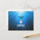Livet börjar efter kaffet, blå stjärndesign, vykort.