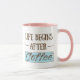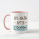Livet börjar efter kaffet, som dricker koffein. mugg