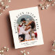 Modern lätt krämfärgad elopements- eller privat vigselkort för bröllopsinbjudan för att informera familj och vänner om att ni gift er i en liten vigselceremoni och nu inbjuda dem till en bröllopsfest. Framsidan visar er foton i en välvd ram och "Happily Ever After Party" i elegant typografi. Under er foton läggs er förnamn och bröllopsdatum till. På baksidan kan ni anpassa er personliga hälsning i detalj och lägga till detaljer om festen eller mottagningen samt era namn i ett underskriftsliknande skrivsätt.
