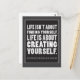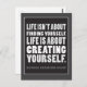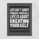 Livet handlar inte om att hitta sig själv. Livet handlar om att skapa sig själv. En påminnelse om att vi gör vårt eget öde och blir den som vill att vi ska vara. Svart och vit design, med fet typografi i koltoner av grått och vitt.
