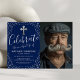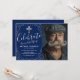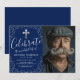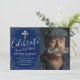 Upptäck den eleganta värdigheten hos våra anpassningsbara begravnings- och minnesinbjudningar. Den djupa marinblå bakgrunden sätter en eftertänksam ton, vars finhet understryks av de glittrande silveraccenterna. Ett personligt foto av den avlidne, i kombination med vår anpassningsbara textmall, kommer varsamt att framhäva firandet av deras liv. Den kristna kors-symbolen symboliserar tro och hopp och framställer en strålande hyllning till den avlidne. Anpassa färgen om du önskar - denna inbjudan är lika unik som den person du minns.