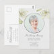 Denna moderna, eleganta Livets Firande inbjudan vykort visar ett foto av din älskade i en smakfull silverram och vintageillustrationer av vackra liljor. Den svaga pappersstrukturen bidrar till den varma känslan. Anpassa alla titlar och meddelanden efter eget tycke. Matchande produkter som gästböcker, ljus etc. finns tillgängliga i vår "Vintage Botaniska Liljor Begravning"-samling.