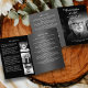 Denna "Livets firande"-skräddarsydda svarta och vita begravnings- eller minnesstundprogram i bifold-format är genomtänkt utformat för att guida gäster genom den minnesstund som hålls för en nära och kära. Detta eleganta program erbjuder ett sofistikerat sätt att dela med sig av ordningen för ceremonin, liksom dödsruna och erkännanden, eller annan text efter eget val. Framsidan sätter en respektfull och kärleksfull ton med en framträdande bild av den avlidne, deras namn och datumet för minnesstund stilfullt visade. Inuti kan man lägga till rubriker, text och 3 bilder. Det är inte bara det första intrycket utan ett bestående sådant, som fångar essensen av den person som hedras. Inuti ger den vänstra panelen detaljer om sekvensen av ceremonin, med förslag som välkomsthälsning, toaster, läsningar och firande aktiviteter som speglar den avlidnes liv och passioner. Detta bifold-program fungerar som en meningsfull souvenir för de som deltar i ceremonin, så att de kan reflektera över de minnen som delas och det liv som firas. Anpassa detta program genom att införliva dina valda bilder, text och unika beröringspunkter som resonerar med din älskades anda. Denna eleganta och