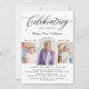 Modern, elegant fotokollage Inbjudan till livets firande. Designen har 3 bilder, typsnittskrift och serviceinformation på framsidan. Anpassa ytterligare med en annan bild på baksidan.