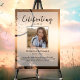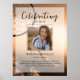 Den perfekta minnesaffischen för att hälsa familj och vänner när de kommer till firandet av din älskades liv. Designen har ett fyrkantigt personligt foto, 5 rader med anpassad text och ett bakgrundsfoto av en drömfångare som fladdrar i vinden. Du kan enkelt byta ut detta mot din egen fotobakgrund. Klassisk men unik - den här mallen är så enkel att anpassa och kommer också att bli en underbar minnessak.
