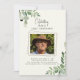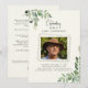 Livets firande Inbjudan. Foto. Livsuppgifter. Lövverk.