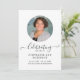 Anpassa detta enkla och eleganta program med namnet, foto i en stilren cirkulär mall och meddelande om din avlidna närstående. Hedra och fira livet för din närstående med denna moderna och stilrena mall. Lätt att anpassa text och foto. Våra hjärtliga kondoleanser och böner är med er under denna mycket svåra tid.