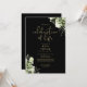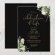 En elegant svart och guld, botanisk personlig akvarell grönska blomster firande av livets minneshögtid inbjudan. Designad av Thisisnotme