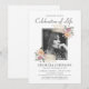 Fira livets skönhet även i avskedet med våra utsökta "Livets firande"-inbjudningar. Prydda med ömtåliga akvarellpampasgräs, blommande blommor och frodig lövverk ger dessa inbjudningar en elegant touch till din minnesstund. Höjdpunkten är ett personligt utrymme för ett porträtt av den älskade du hyllar. Dessutom kan vår moderna mall för begravnings- och minnesstund anpassas helt med ett enkelt klick. Ändra typsnitt, storlekar och färger för att göra det verkligen till ditt eget.