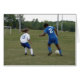 Småfotboll som går upp mot stora fotbollsflickor, uppmuntran