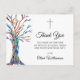 Snyggten Baptismer Tack.. Kortet har ett livets träd i färg på regnbågen och kor. Ett enkelt anpassade med namn och budskapet. Den här unika designen är ett utdrag ur en mosaik som är gjord av mycket litet delar av glas med färgad. Eftersom vi skapar vår egen teckning kommer du inte att hitta just den här bilden från andra designers. Original Mosaic © Michele Davies.