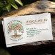 Det här visitkortets design representerar vackert essensen av funktionell medicin genom sin symboliska träd. Stammen, formad som en dubbelhelix-DNA-sträng, framhäver den djupa kopplingen mellan genetik och personlig hälsa. Trädets cirkulära form symboliserar helhet och balans, vilket återspeglar funktionell medicinens holistiska syn på välbefinnande. Rötterna symboliserar sökandet efter grundorsakerna till sjukdom, medan de livfulla bladen representerar tillväxt, läkning och optimal hälsa. Denna design förmedlar ett budskap om vetenskapligt beprövad naturlig läkning, vilket gör den till ett idealiskt val för praktiker som fokuserar på att återställa välbefinnande inifrån och ut.
