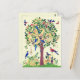 Vykort i träd försedd med ömtåliga rosa blommar och toning med levande färgad fåglar i lush foliage. I scenen ingår lekfulla hängande prydnadsföremål och surrealistiskt inslag som skapar en drömliknande, storybook atmosfär.