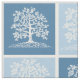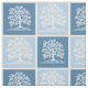 Livets träd med fåglar Samma bild upprepad i medelblå och ljusblå design för en träd-filt eller-filt gräns?